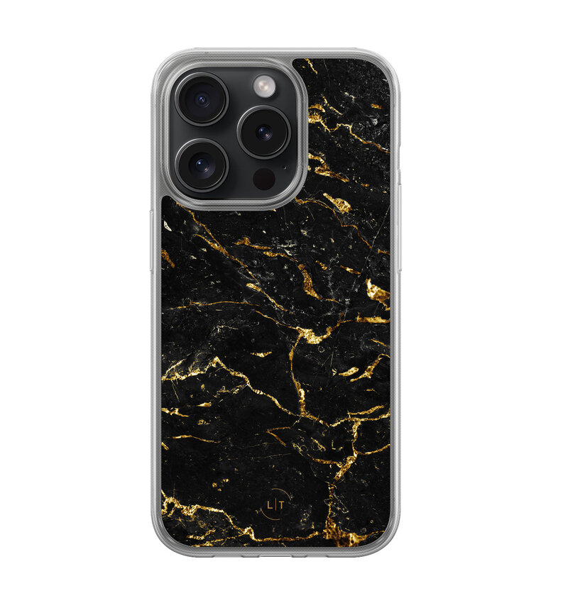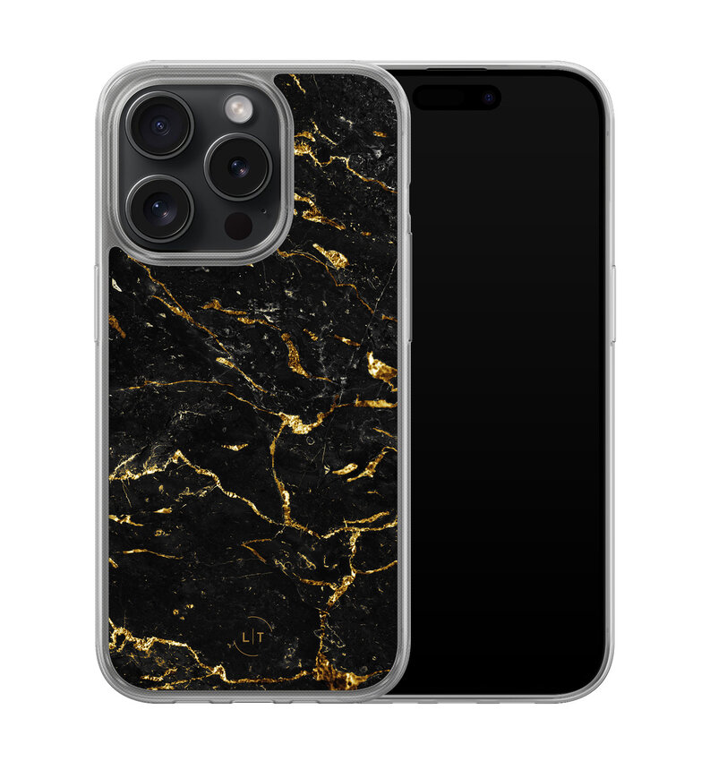 iPhone 15 Pro hybride hoesje - Marmer zwart goud