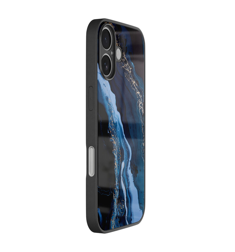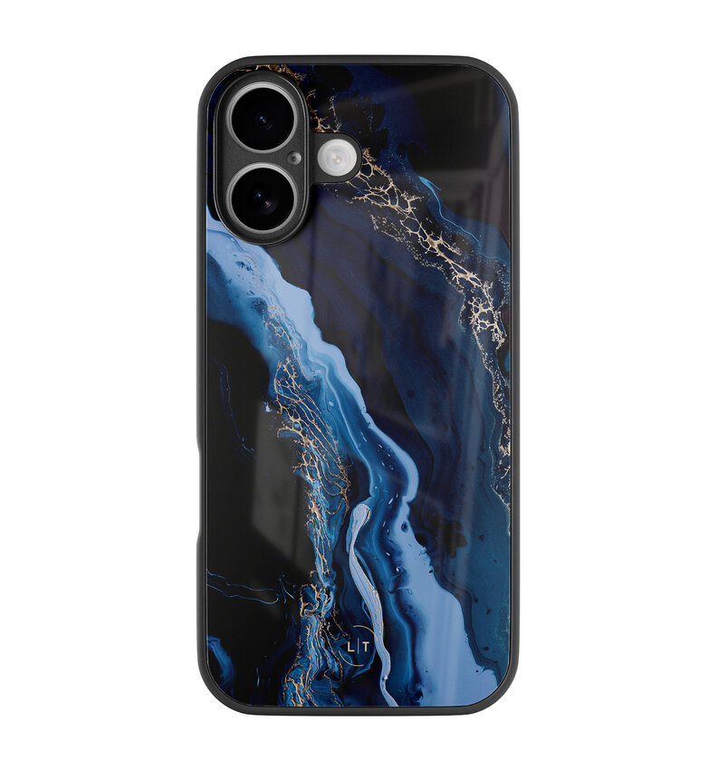 iPhone 16 hoesje glas - Marmer lagoon blauw