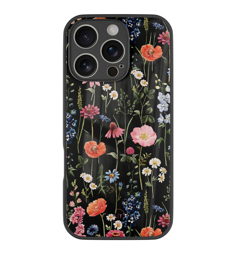 iPhone 16 Pro hoesje glas - Dark flowers