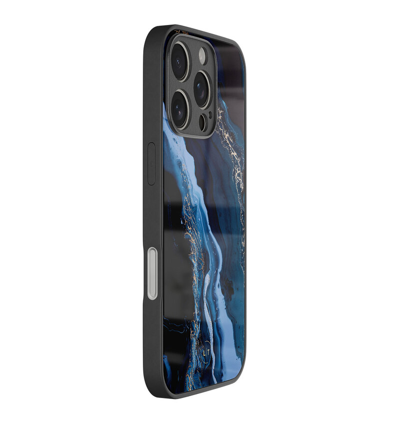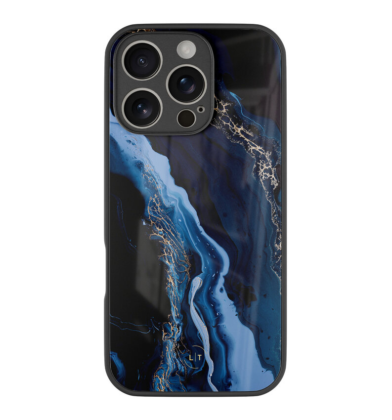 iPhone 16 Pro hoesje glas - Marmer lagoon blauw
