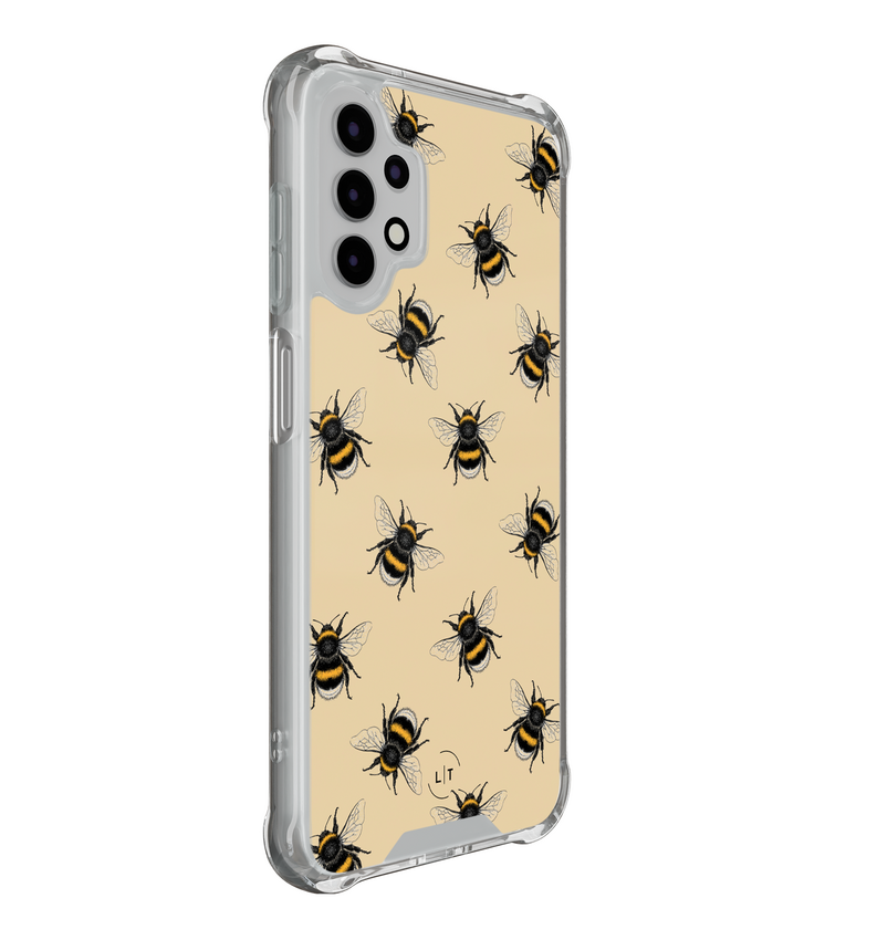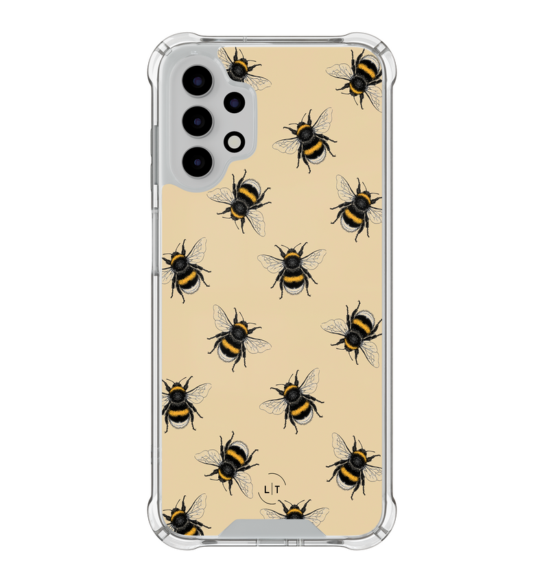 Met de 'Bee Happy' case straalt je Samsung Galaxy A13 4G pure vrolijkheid uit. Dit hoesje, met vrolijke bijen op een zonnige achtergrond, is meer dan alleen een mooi gezicht; het biedt solide bescherming met zijn schokbestendige ontwerp. Ideaal!