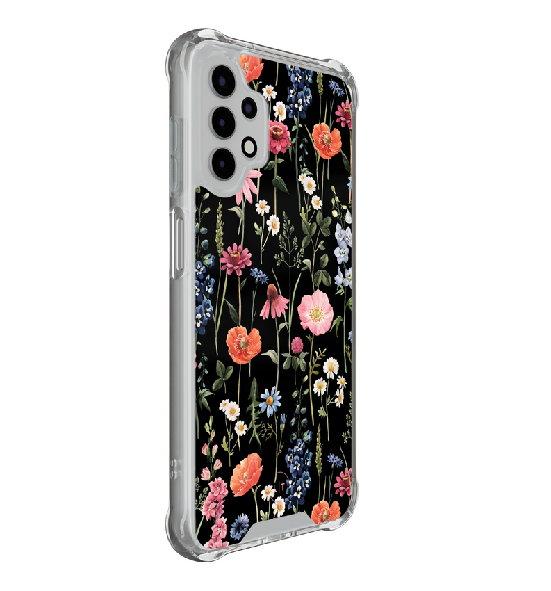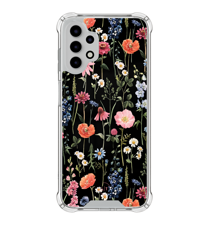 Dit hoesje voor de Samsung Galaxy A13 4G, verfraaid met donkere bloemen, brengt de geheimzinnige schoonheid van een nachttuin naar je smartphone. De robuuste constructie met versterkte hoeken beschermt optimaal tegen val- en stootschade.
