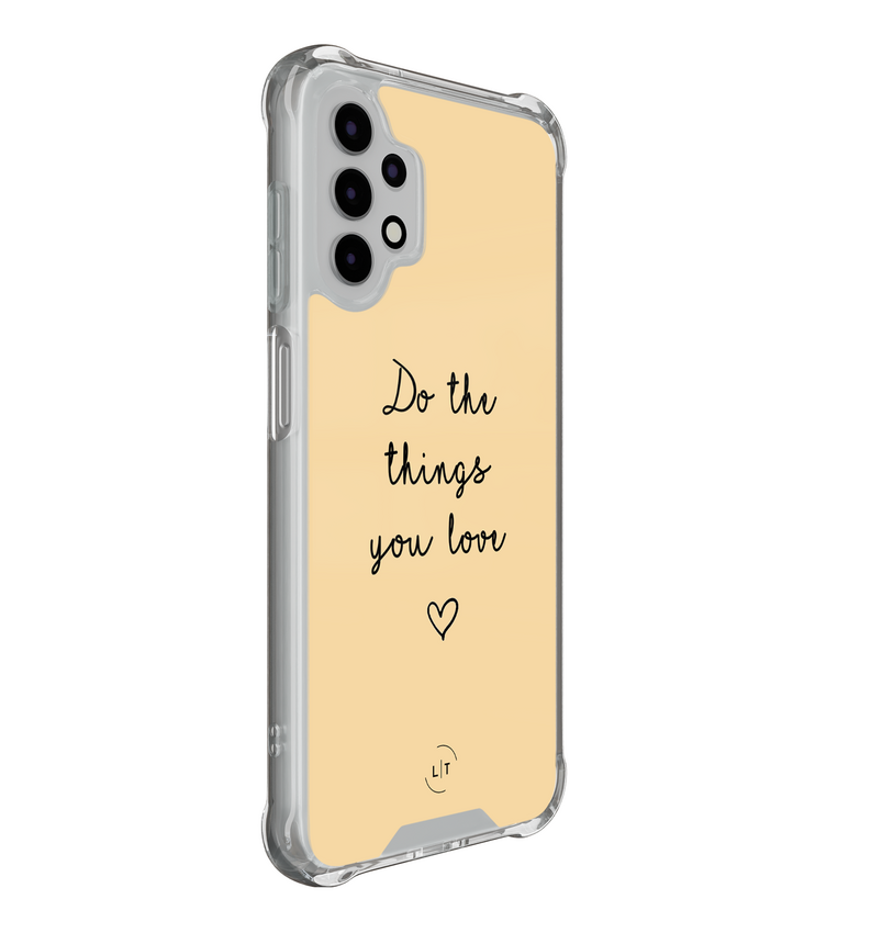 Laat je inspireren door de positieve boodschap van dit hoesje: 'Do the Things with Love'. De speelse lettertypen tegen een minimalistische achtergrond zorgen voor een unieke look, terwijl de stevige constructie je telefoon beschermt bij elke val.