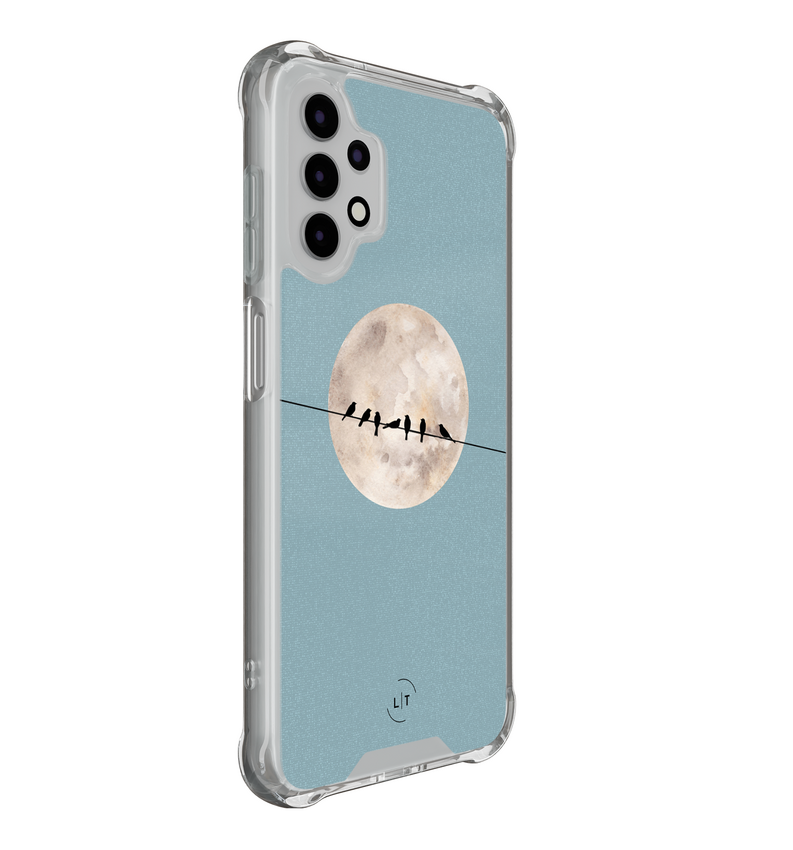 Ervaar de magie van de nacht met de Moon Birds case voor je Samsung A13 4G. De unieke vogelprint tegen een maanlandschap geeft een artistieke touch. Versterkte hoeken garanderen stevigheid, en het slanke ontwerp zorgt voor een comfortabele grip.