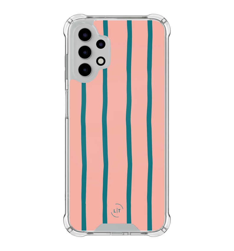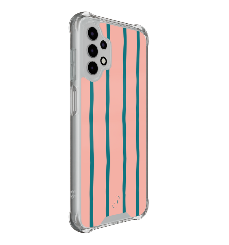 Ontdek de charme van het Pink Flow hoesje voor je Samsung A13 4G. Het speelse samenspel van roze en petrolkleurige golven geeft je telefoon een frise look. Dankzij de schokabsorberende hoeken is je toestel goed beschermd.