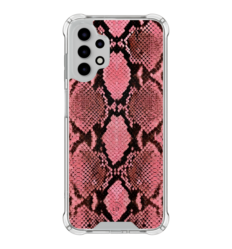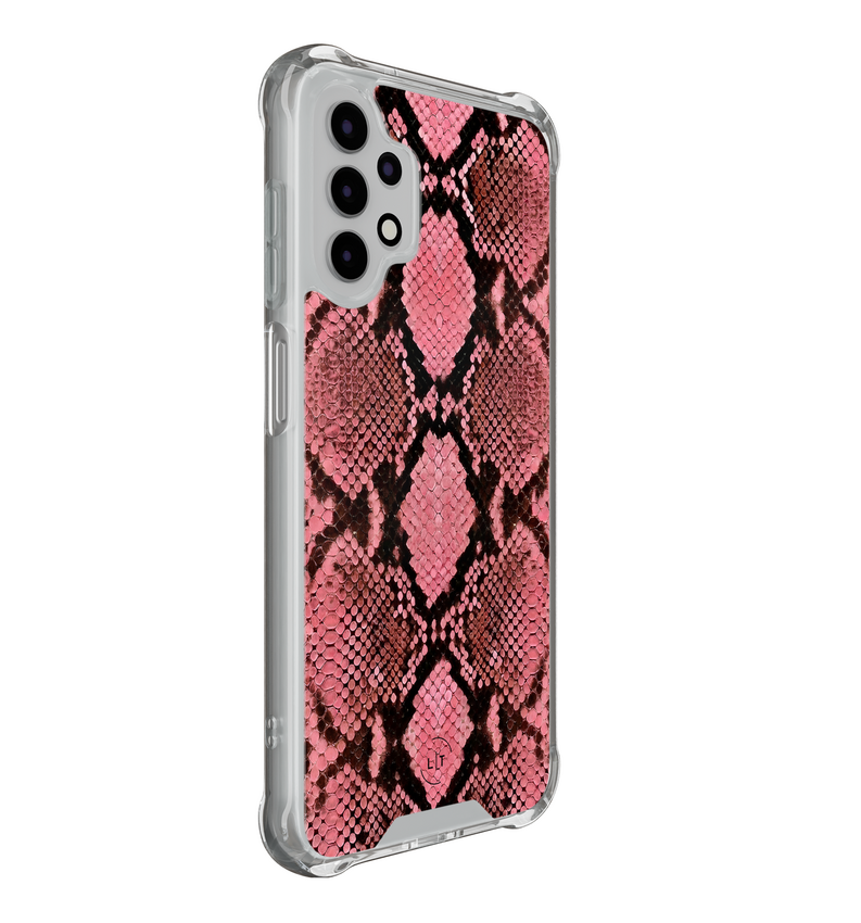 Stoere slangenprint in roze tinten met een trendy uitstraling. Schokabsorberende randen beschermen bij vallen en stoten, terwijl verhoogde randen je scherm en camera extra beschermen. Perfecte pasvorm en makkelijke toegang tot alle knoppen en poorten.