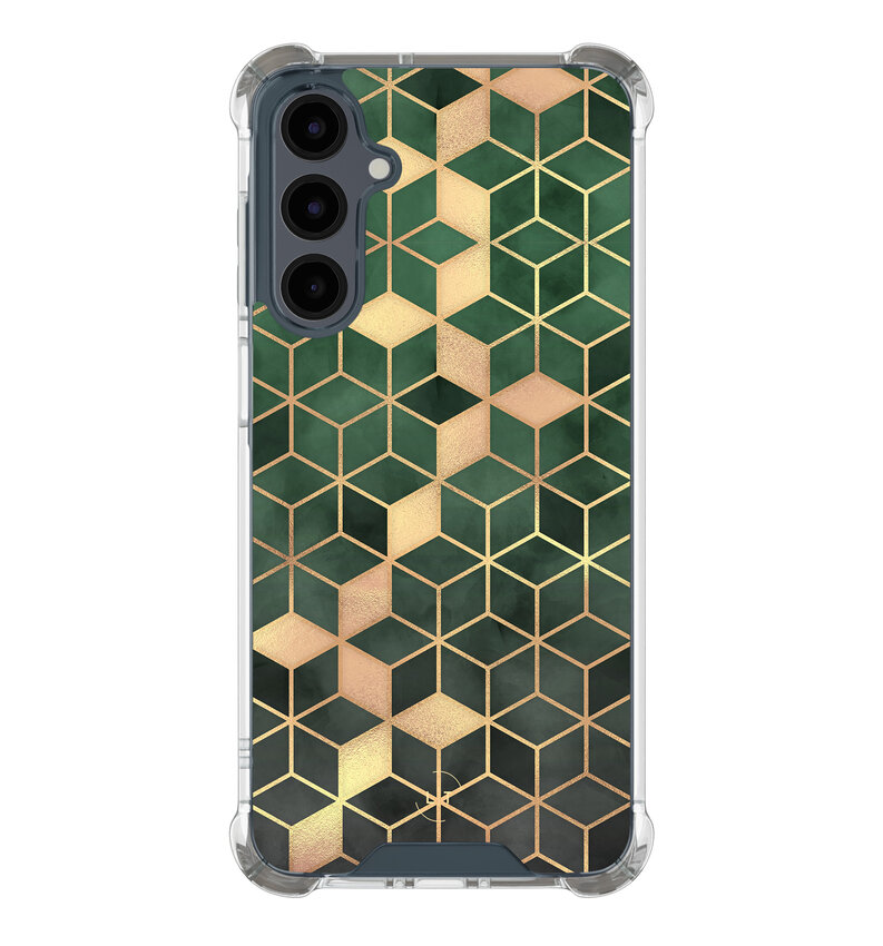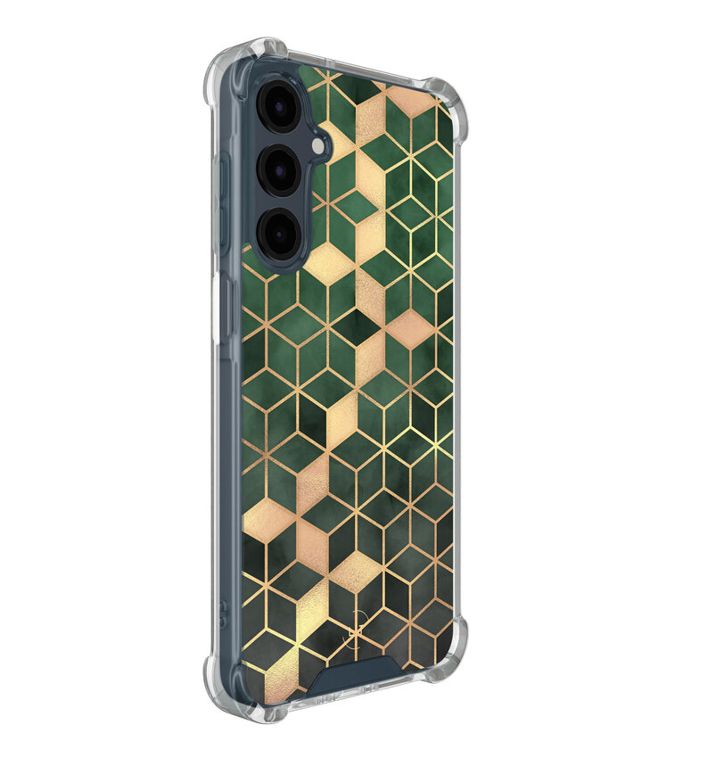 Met een dynamisch kubus groen patroon biedt dit hoesje een unieke look en betrouwbare bescherming. De schokabsorberende hoeken en gemakkelijke toegang tot alle knoppen en poorten maken het een praktische keuze voor dagelijks gebruik.