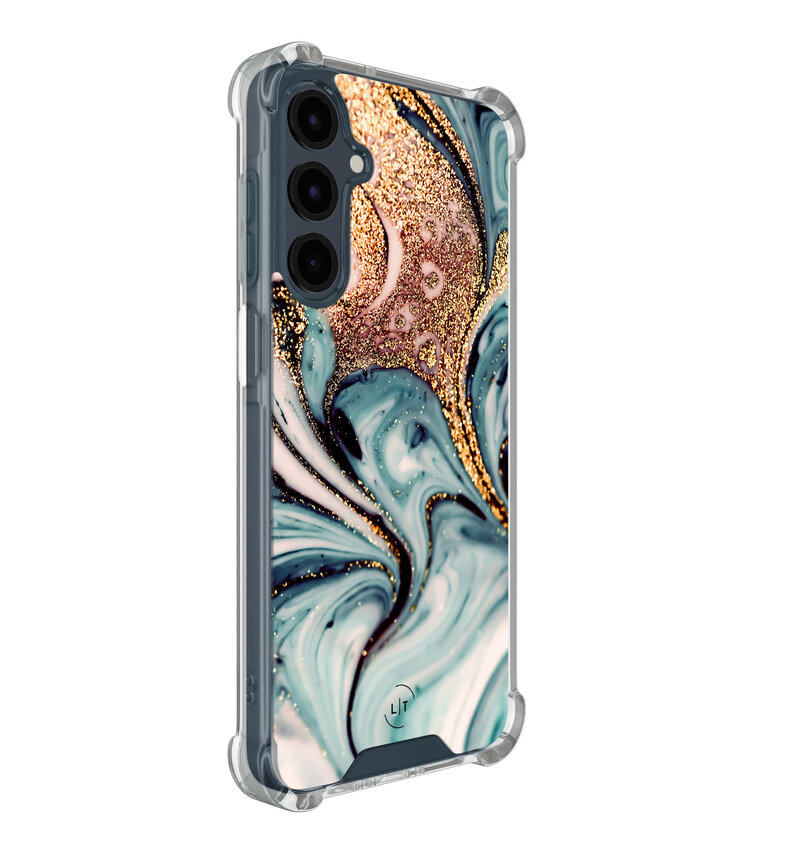 Voeg een vleugje luxe toe aan je Samsung Galaxy A16 met dit shockproof hoesje. De marmerlook in blauw met gouden aderen biedt niet alleen een stijlvolle uitstraling, maar ook uitmuntende bescherming tegen stoten.