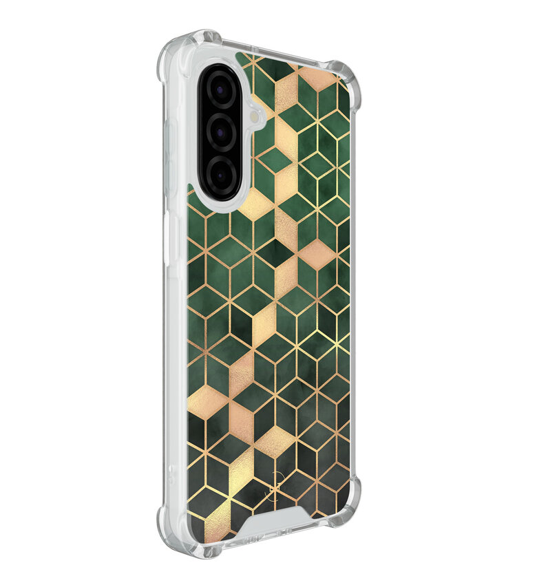 Met een dynamisch kubus groen patroon biedt dit hoesje een unieke look en betrouwbare bescherming. De schokabsorberende hoeken en gemakkelijke toegang tot alle knoppen en poorten maken het een praktische keuze voor dagelijks gebruik.