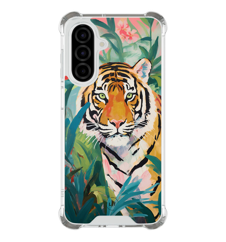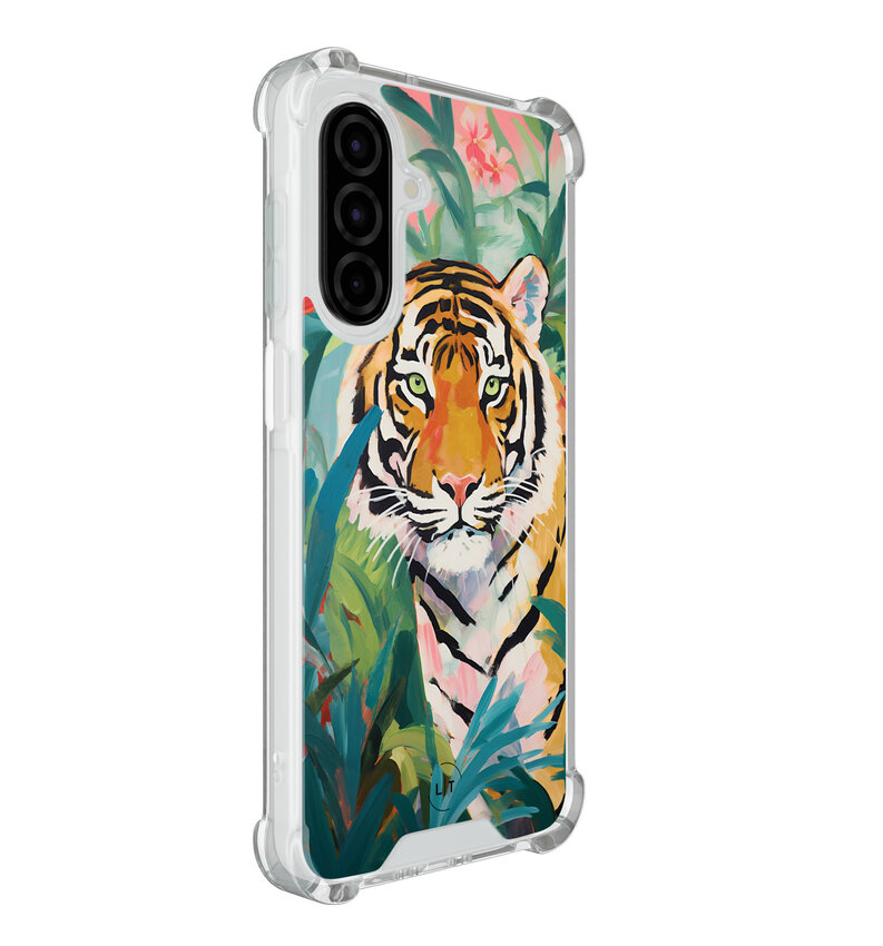 Met zijn levendige tijgerprint en weelderige jungle-achtergrond, voegt dit hoesje een exotische flair toe aan je telefoon. Het robuuste ontwerp met schokabsorberende eigenschappen zorgt voor uitstekende bescherming tegen dagelijkse slijtage.