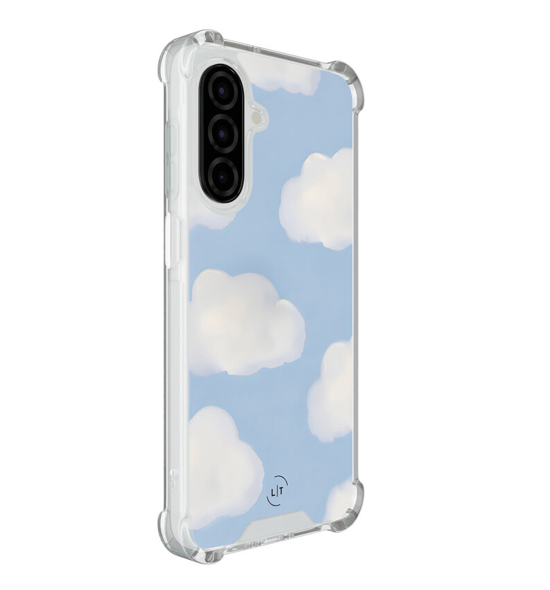 Deze shockproof case met wolkjes patroon geeft je Samsung Galaxy A26 een unieke, modieuze uitstraling. De stevige hoeken beschermen je toestel optimaal bij stoten en vallen. Perfecte pasvorm en opvallend design in één!