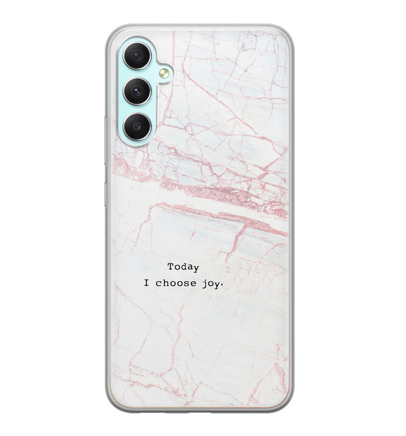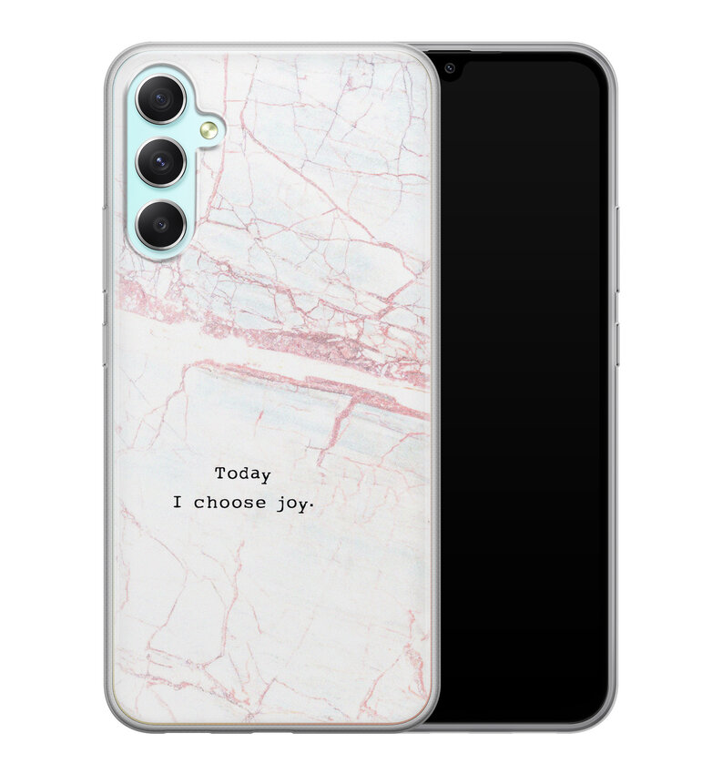 Val op met dit mooie I choose joy telefoonhoesje voor de Samsung Galaxy A34. De case beschermt jouw telefoon tegen alledaagse schade zoals schokken, stof en krasjes. De bumper heeft een opstaand randje voor het telefoonscherm.