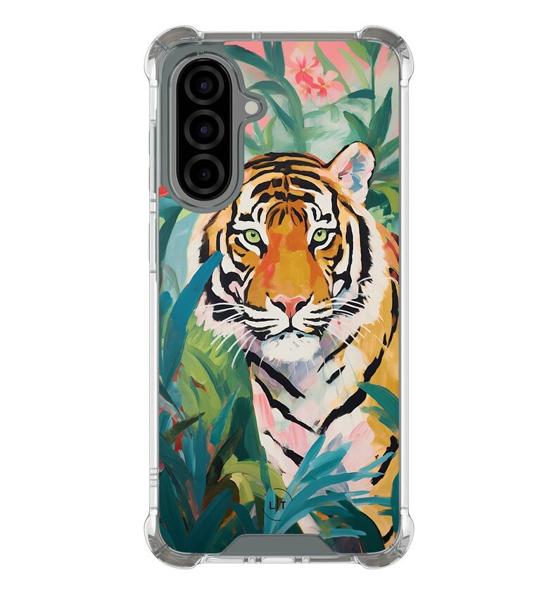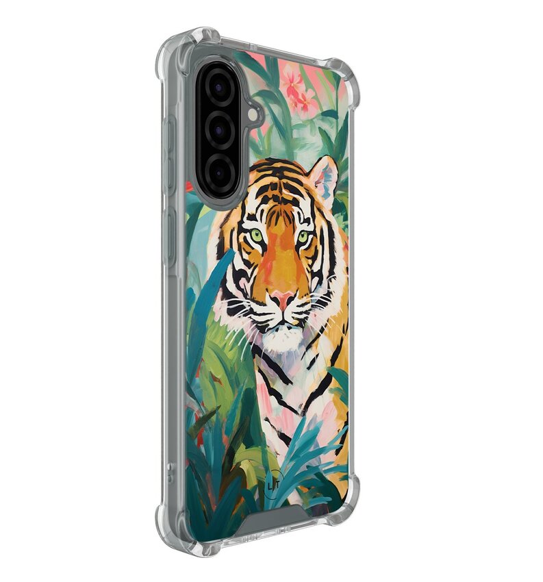 Met zijn levendige tijgerprint en weelderige jungle-achtergrond, voegt dit hoesje een exotische flair toe aan je telefoon. Het robuuste ontwerp met schokabsorberende eigenschappen zorgt voor uitstekende bescherming tegen dagelijkse slijtage.