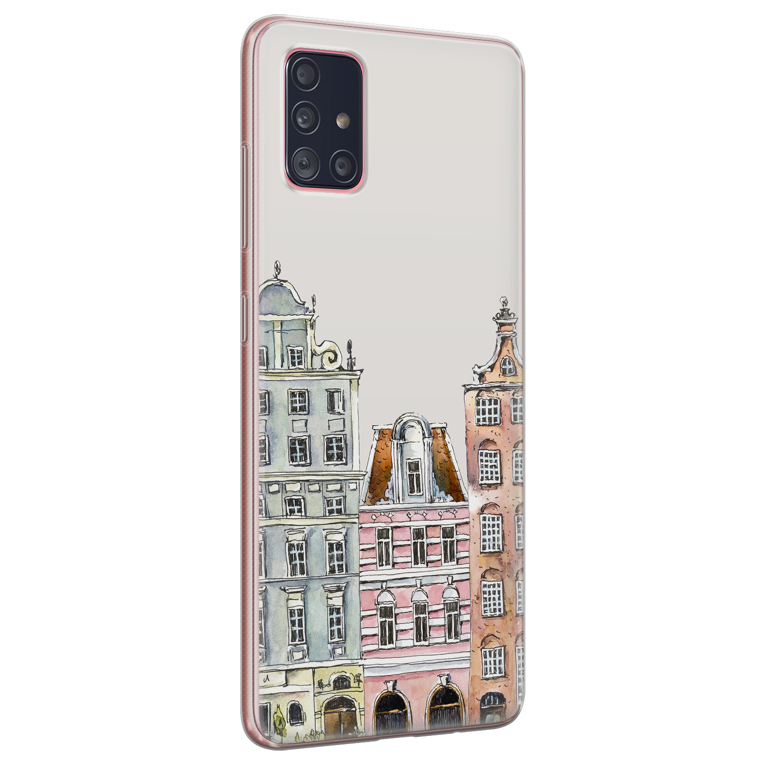 Geef jouw telefoon de uitstraling van een schilderij dankzij dit leuke Grachtenpand telefoonhoesje voor de Samsung Galaxy A51. De siliconen backcover heeft een transparante bumper met opstaande randjes. Door de transparantie blijft de kleur van je smartph