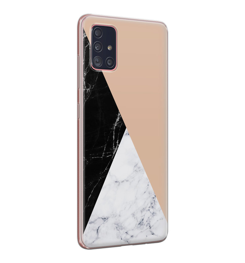 Marmer maar dan met een twist, dat is dit Samsung Galaxy A51 hoesje zeker! Het flexibele telefoonhoesje is dun en heeft een naadloze pasvorm. Hierdoor wordt het geheel niet veel dikker en zwaarder.