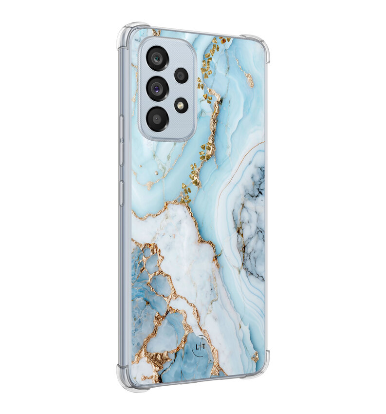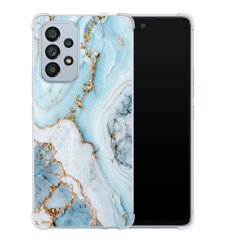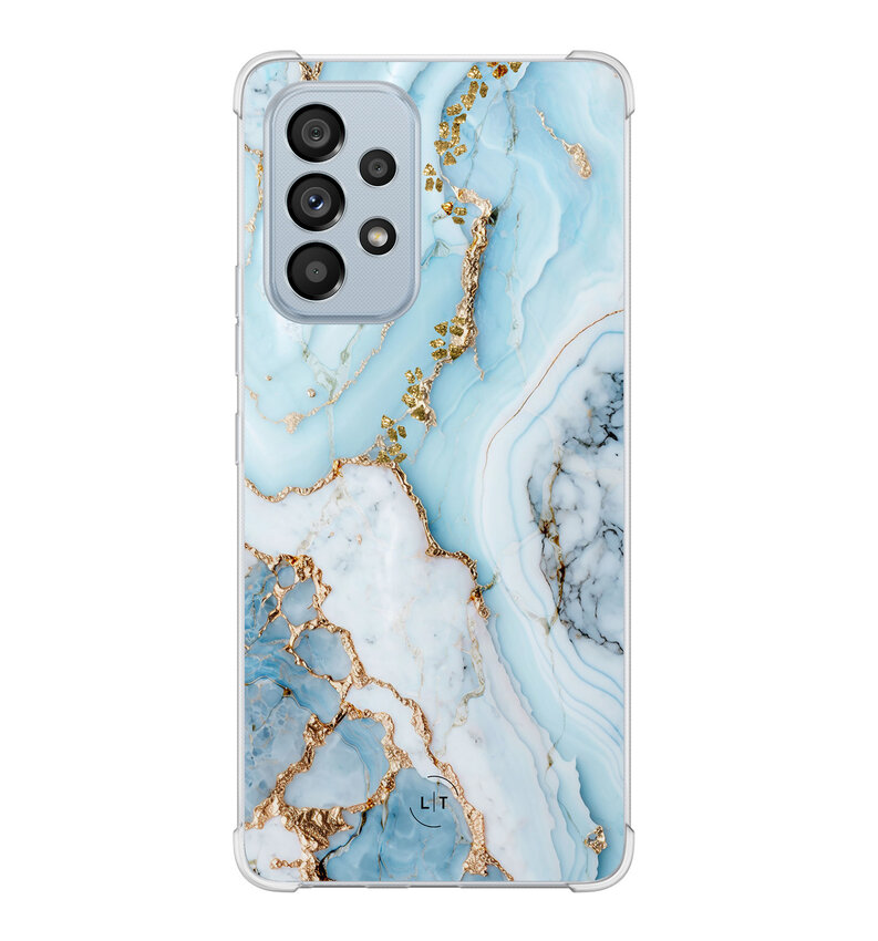 Dit stijlvolle marmer babyblauwe hoesje voor je Samsung Galaxy A53 combineert elegantie met duurzaamheid. De extra verstevigde hoeken bieden superieure bescherming, terwijl het slanke profiel en de zachte textuur zorgen voor comfort.