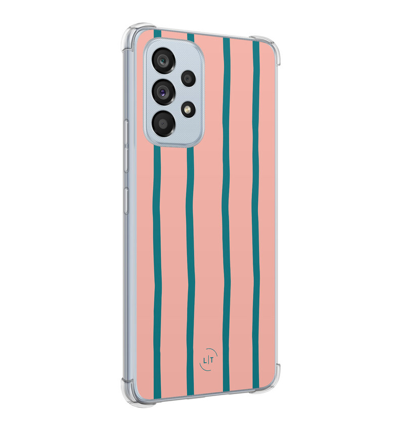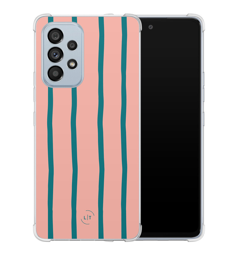 Ontdek de charme van het Pink Flow hoesje voor je Samsung A53. Het speelse samenspel van roze en petrolkleurige golven geeft je telefoon een frise look. Dankzij de schokabsorberende hoeken is je toestel goed beschermd tegen onverwachte stoten en vallen.