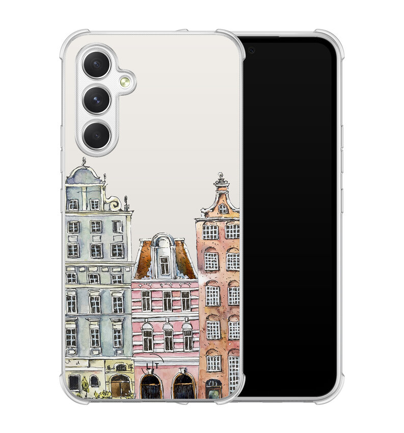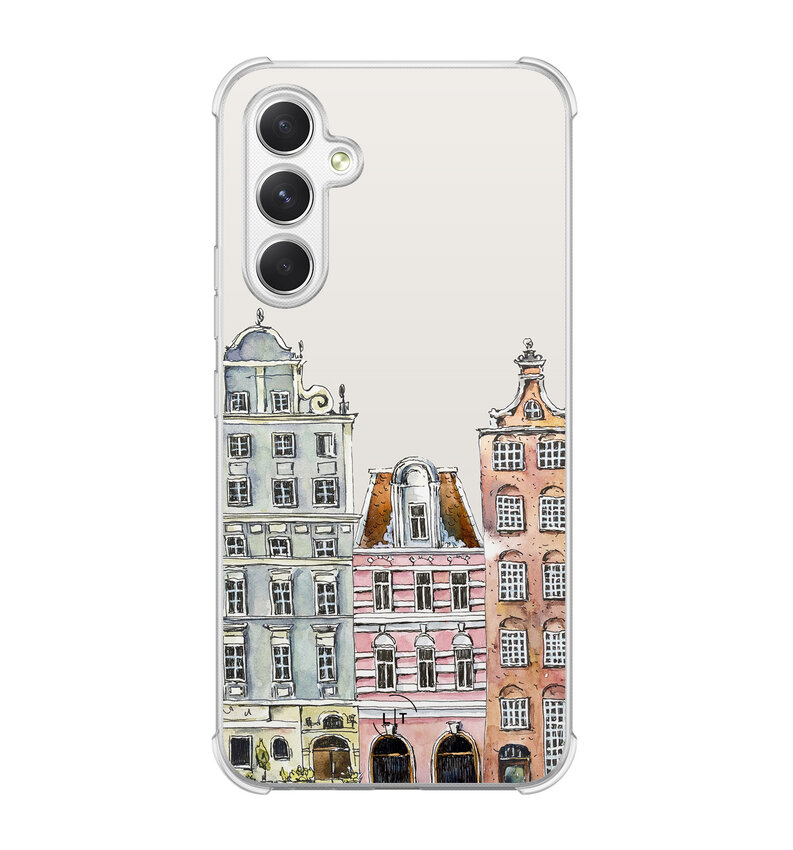 Neem een stukje Nederlandse charme overal mee naartoe met de 'Grachtenpandjes' hoes. Dit unieke design toont pittoreske grachtenhuizen, terwijl de stevige constructie van de smartphonehoes je telefoon beschermt tegen alledaagse ongelukken.