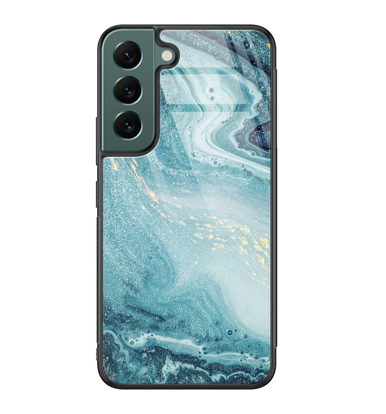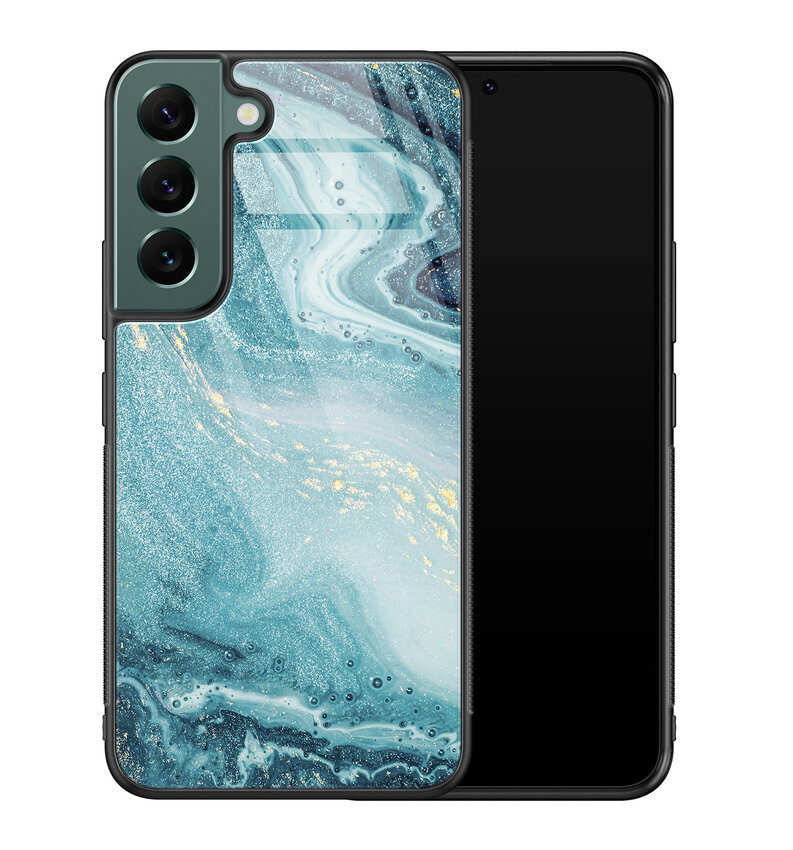 Samsung Galaxy S22 glazen hardcase - Marmer blauw