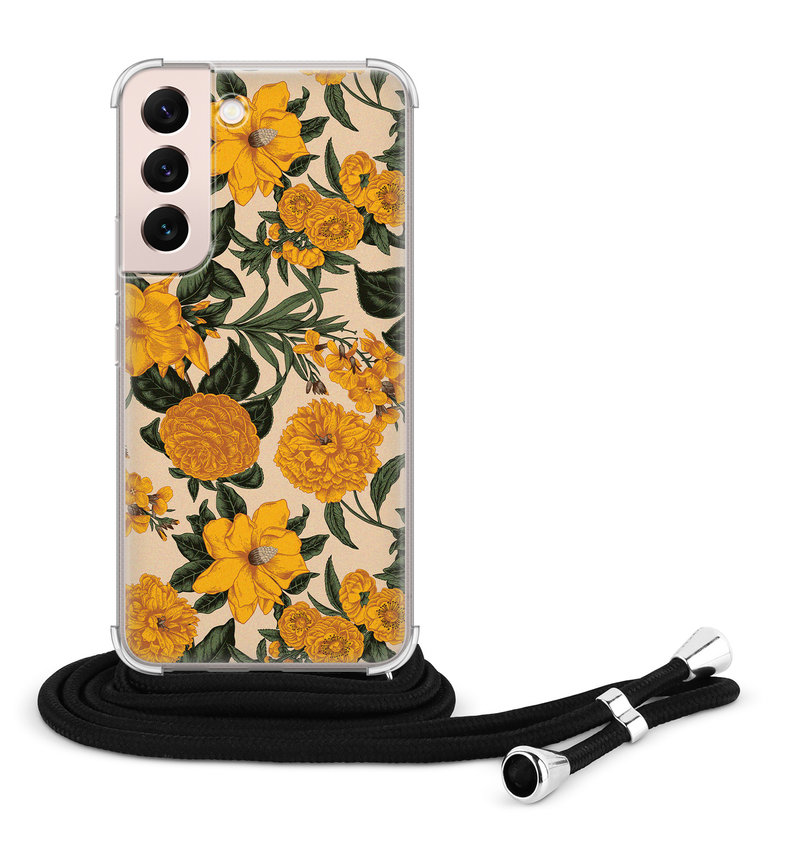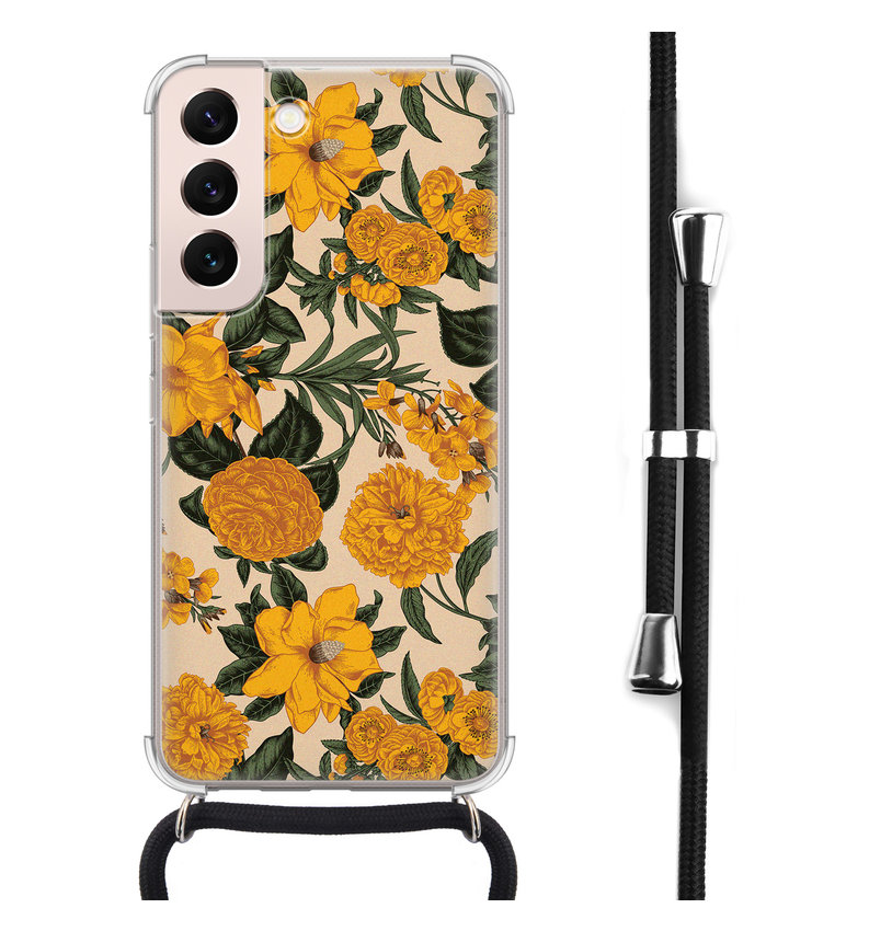Samsung Galaxy S22 hoesje met koord - Retro flowers