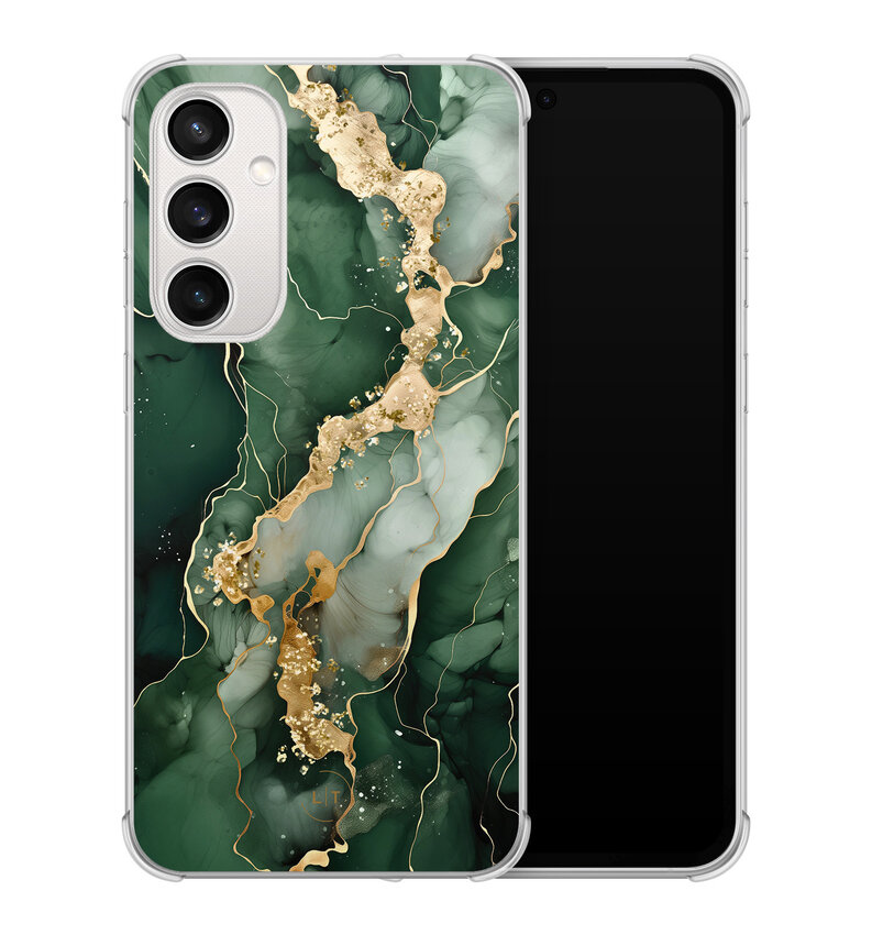 Dit luxueuze Samsung Galaxy S23 FE hoesje in marmer groen goud design biedt een elegante uitstraling. De sterke constructie met versterkte hoeken zorgt voor uitstekende bescherming. Alle uitsparingen blijven eenvoudig toegankelijk.