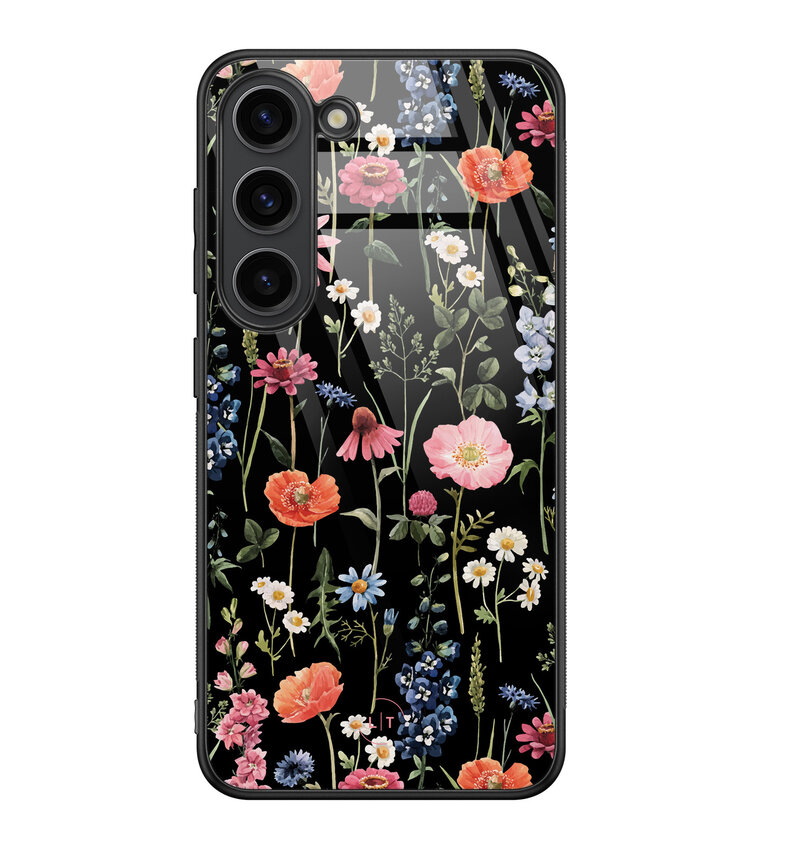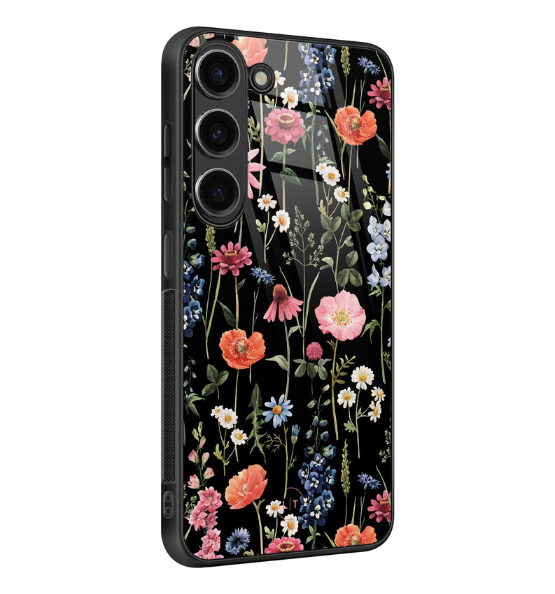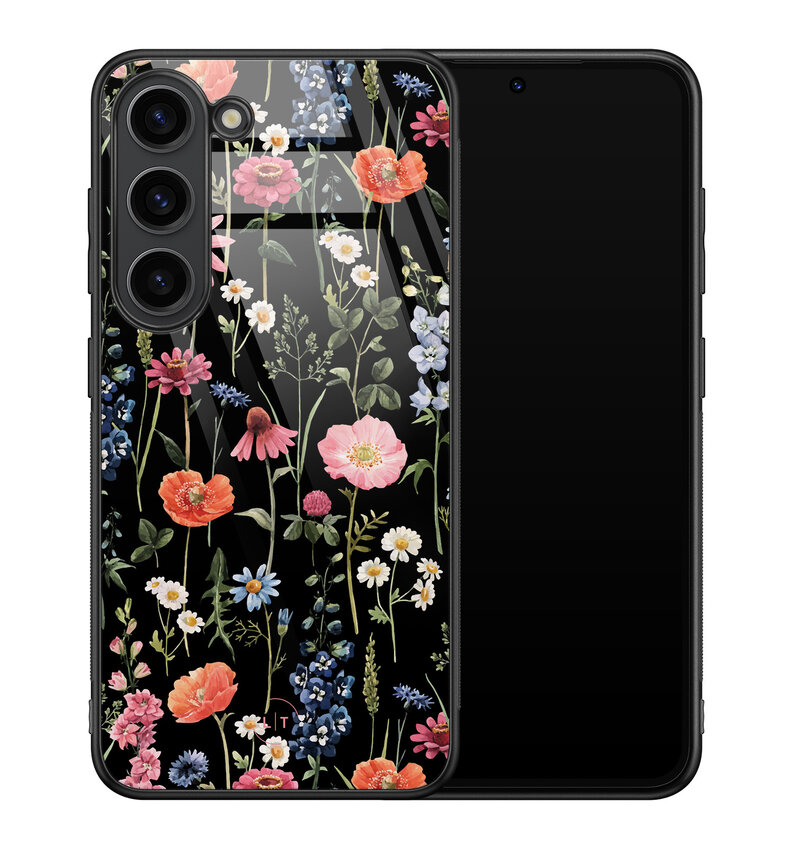 Samsung Galaxy S23 hoesje glas - Dark flowers