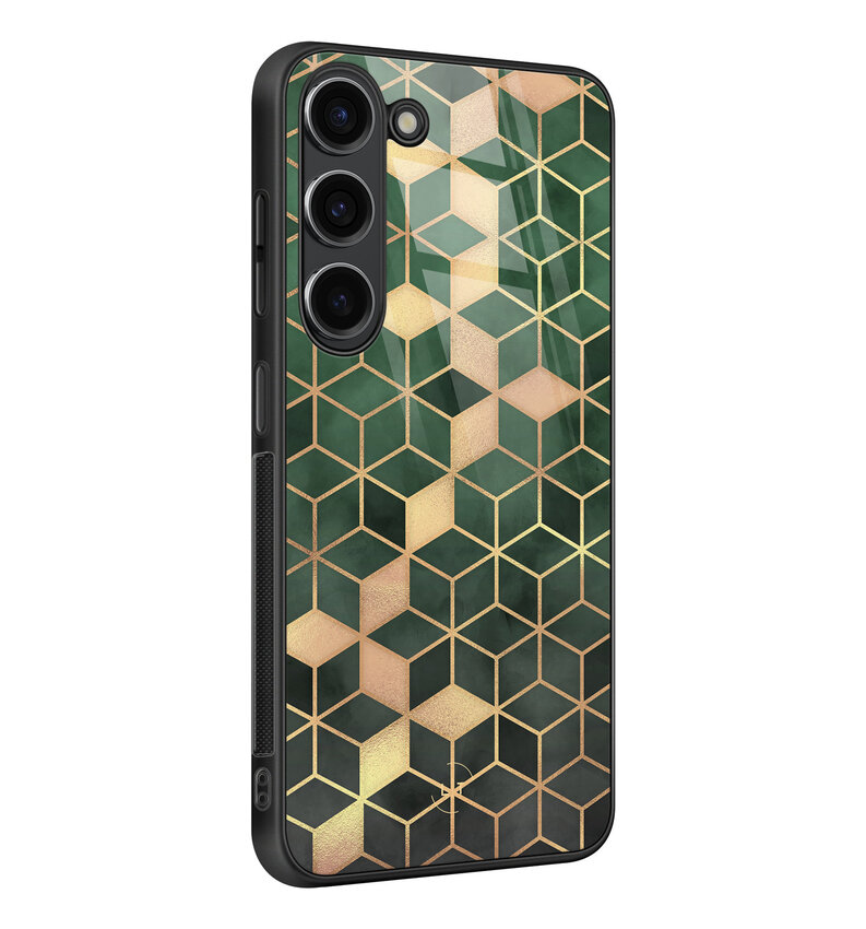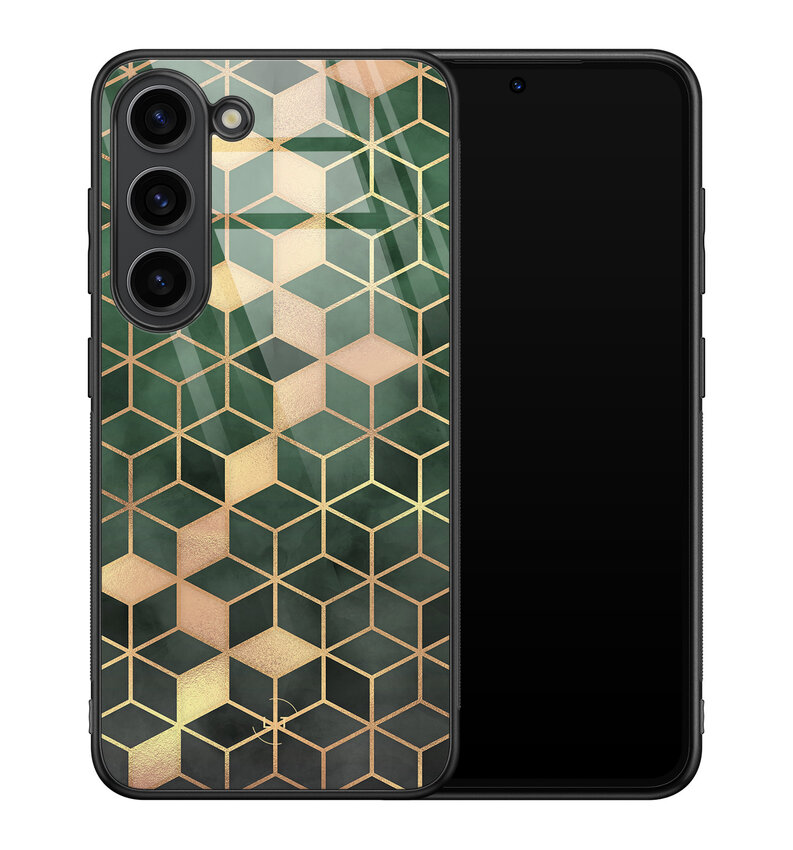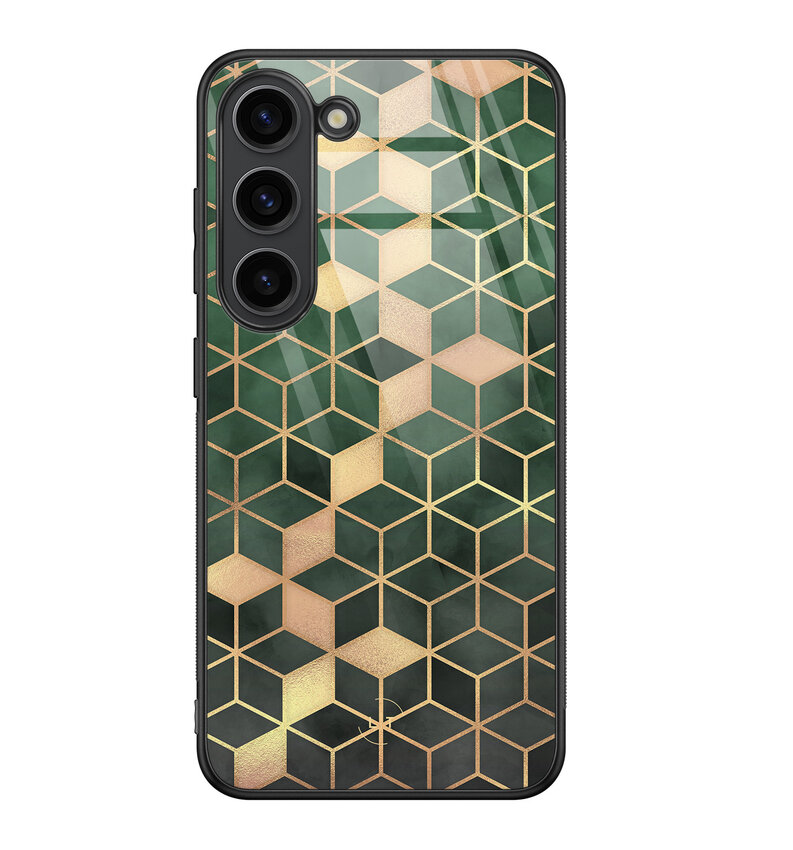 Samsung Galaxy S23 hoesje glas - Kubus groen