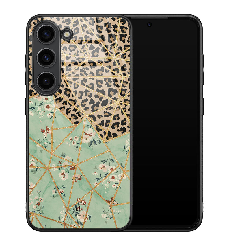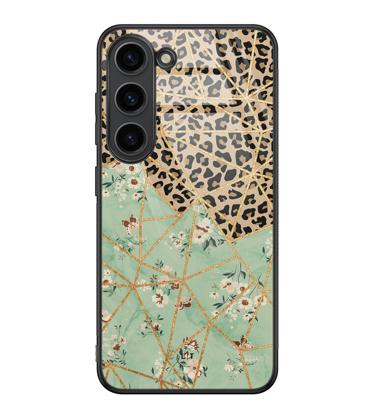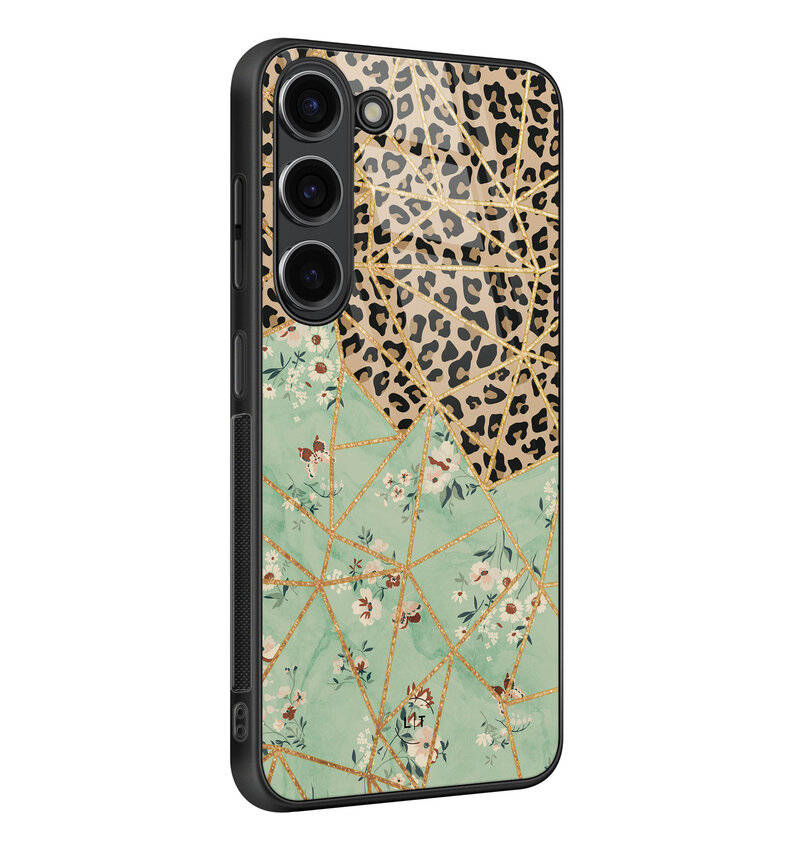 Samsung Galaxy S23 hoesje glas - Luipaard flower print