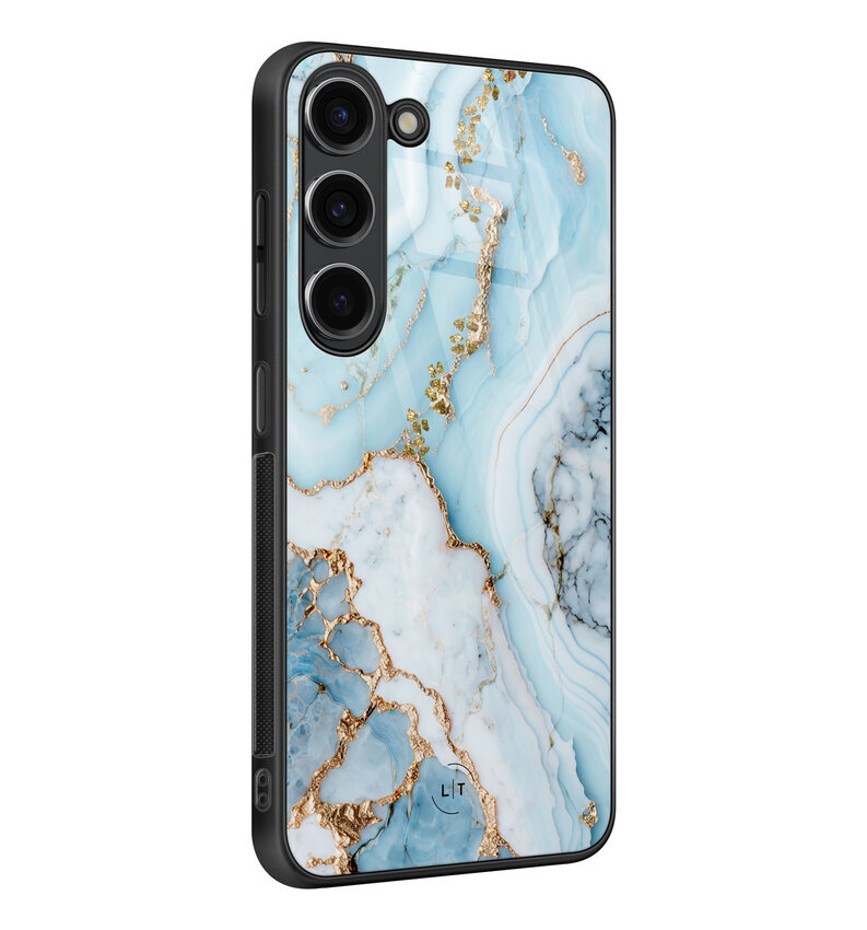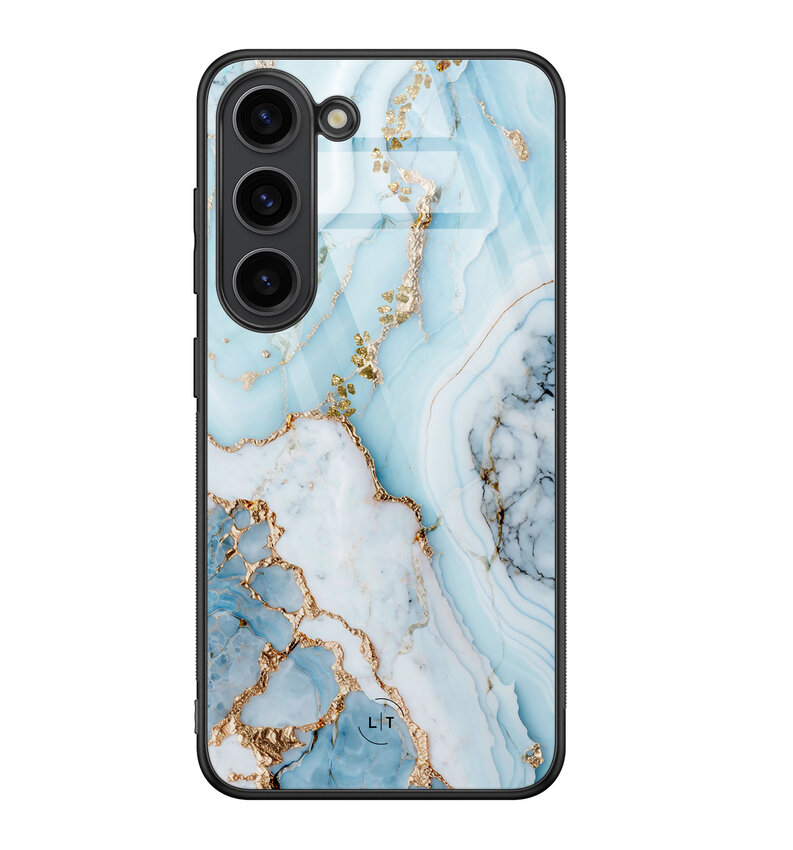 Samsung Galaxy S23 hoesje glas - Marmer babyblauw