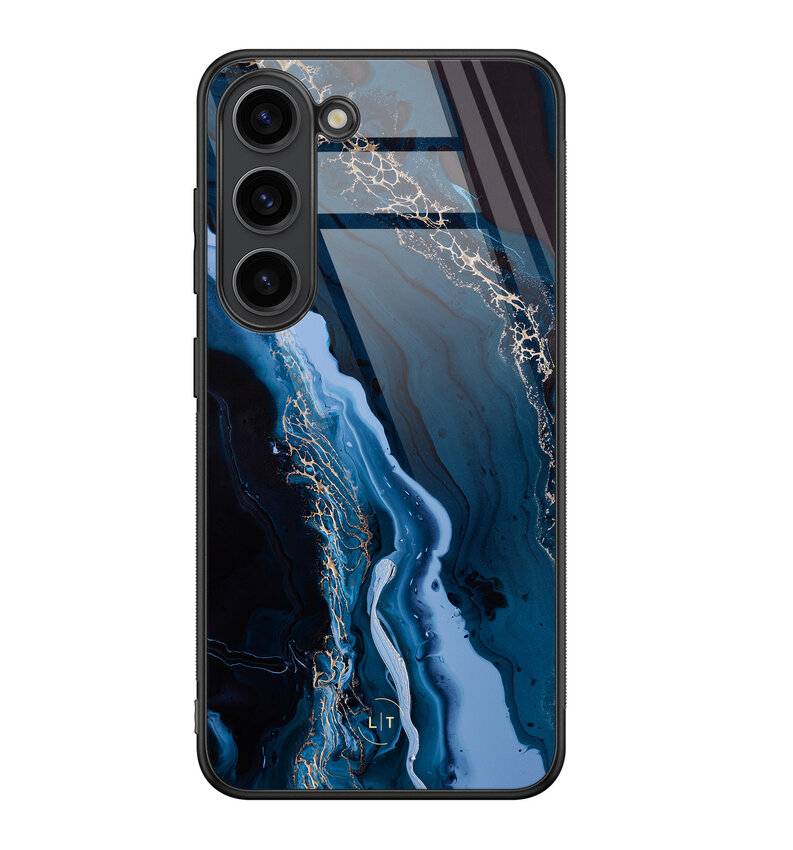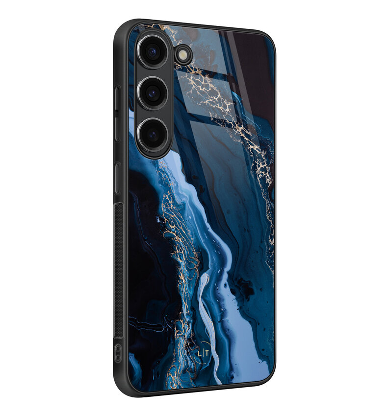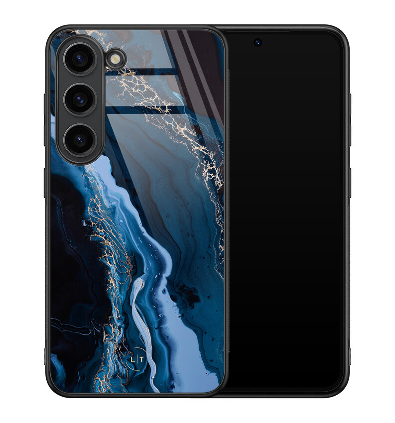 Samsung Galaxy S23 hoesje glas - Marmer lagoon blauw