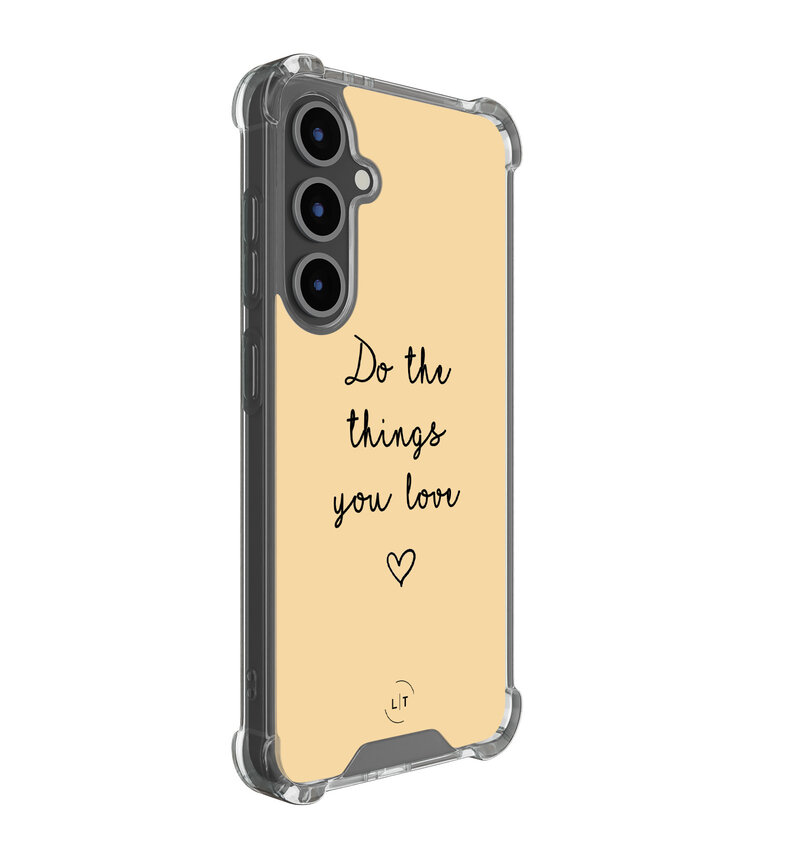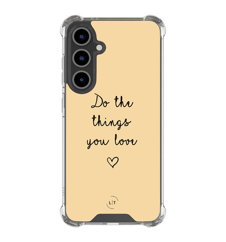 Laat je inspireren door de positieve boodschap van dit hoesje: 'Do the Things with Love'. De speelse lettertypen tegen een minimalistische achtergrond zorgen voor een unieke look, terwijl de stevige constructie je telefoon beschermt bij elke val.