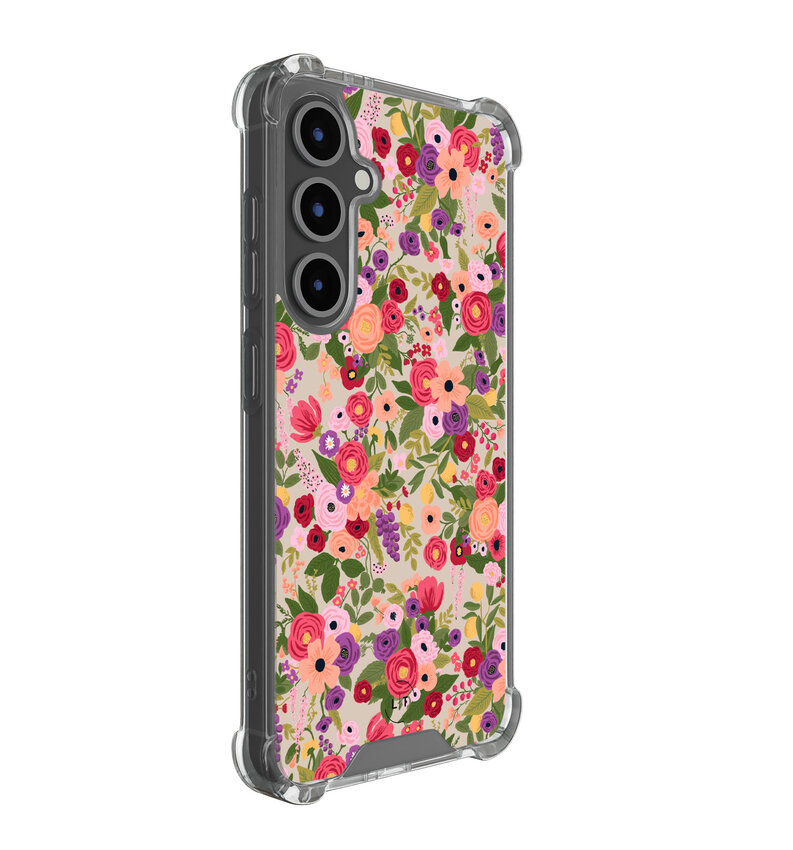 De Floral Garden case biedt een prachtige mix van stijl en bescherming. Het fleurige bloemendesign voegt een artistieke touch toe, terwijl de schokabsorberende hoeken en verhoogde randen rondom het scherm en de camera robuuste veiligheid garanderen.
