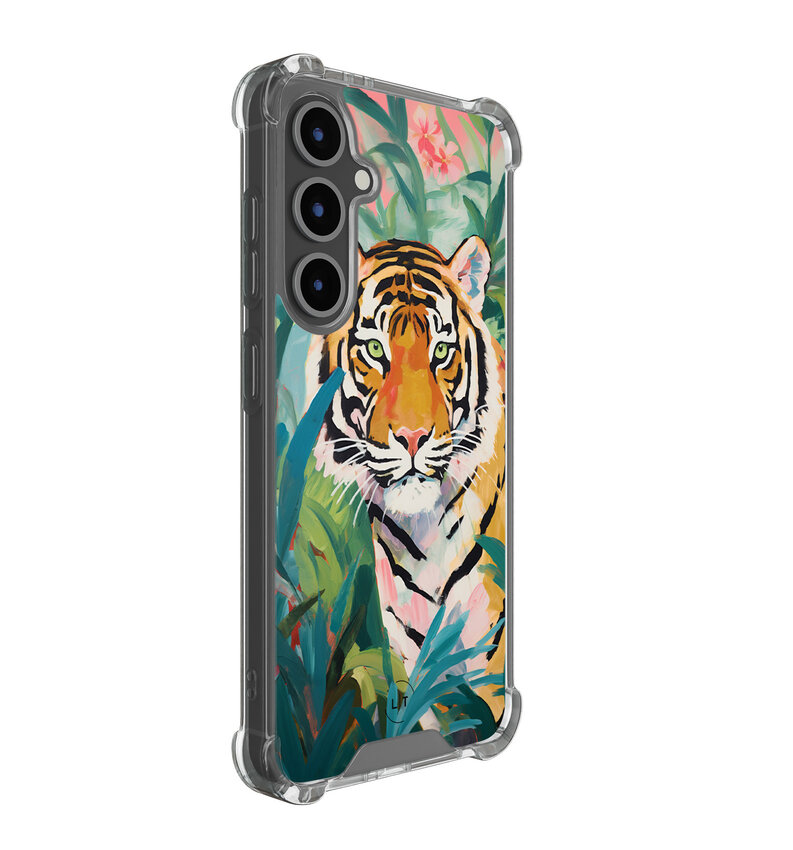 Met zijn levendige tijgerprint en weelderige jungle-achtergrond, voegt dit hoesje een exotische flair toe aan je telefoon. Het robuuste ontwerp met schokabsorberende eigenschappen zorgt voor uitstekende bescherming tegen dagelijkse slijtage.