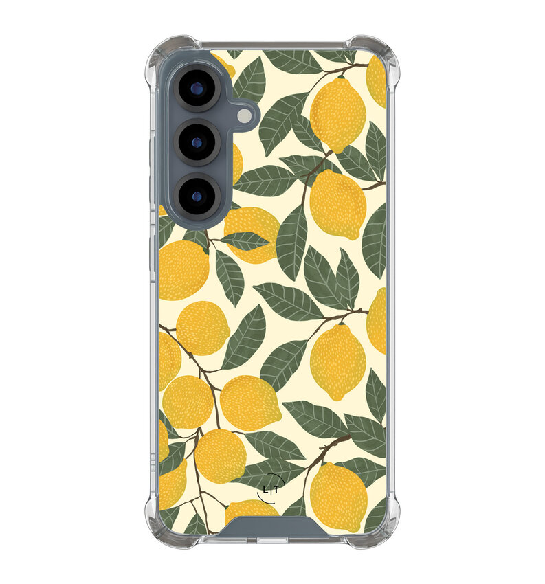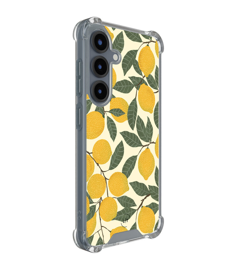 Fris en fruitig, dit Samsung Galaxy S25 shockproof hoesje met een levendige citroenprint combineert zomerse flair met serieuze bescherming. Ideaal voor het veilig bewaren van je telefoon tegen stoten en krassen.