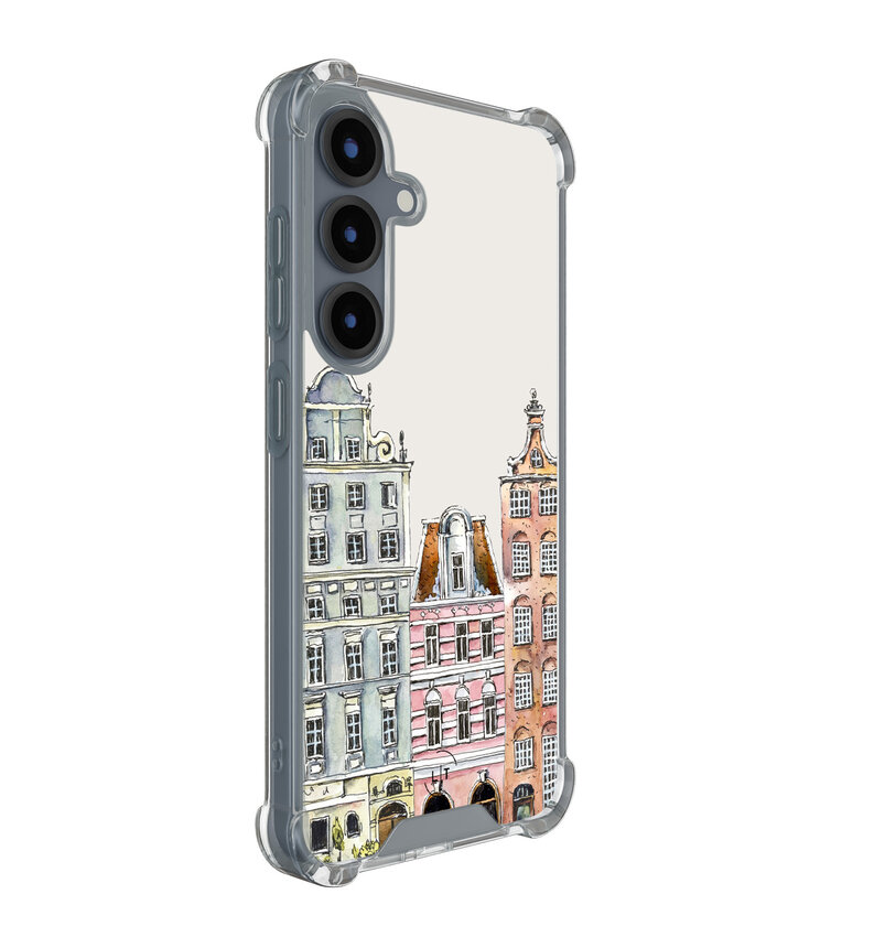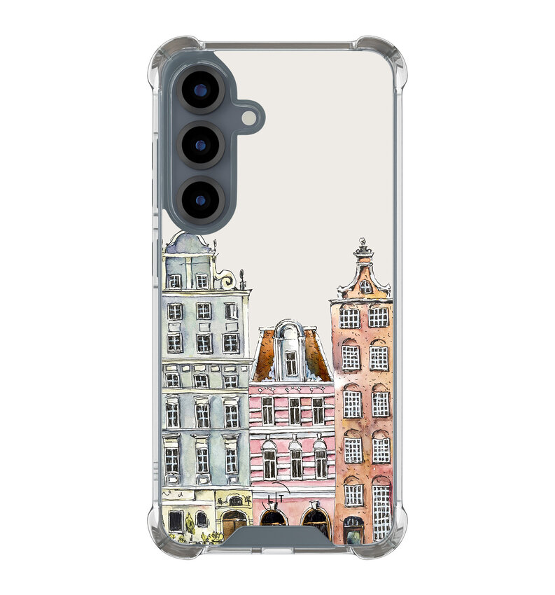 Neem een stukje Nederlandse charme overal mee naartoe met de 'Grachtenpandjes' hoes. Dit unieke design toont pittoreske grachtenhuizen, terwijl de stevige constructie van de smartphonehoes je telefoon beschermt tegen alledaagse ongelukken.