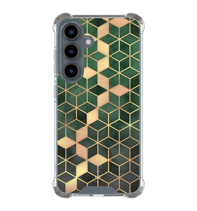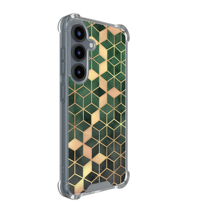 Met een dynamisch kubus groen patroon biedt dit hoesje een unieke look en betrouwbare bescherming. De schokabsorberende hoeken en gemakkelijke toegang tot alle knoppen en poorten maken het een praktische keuze voor dagelijks gebruik.