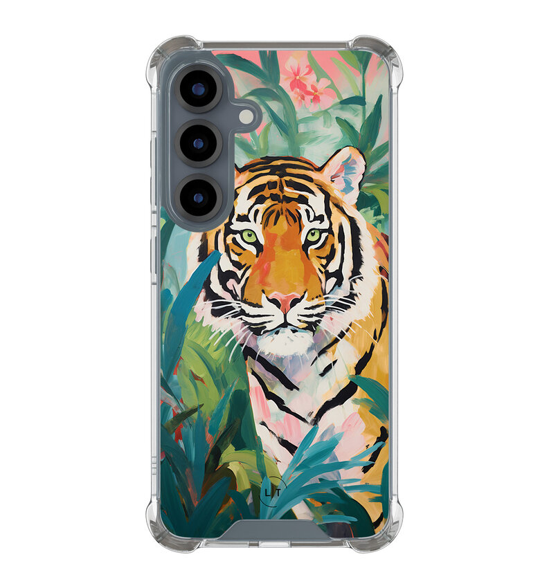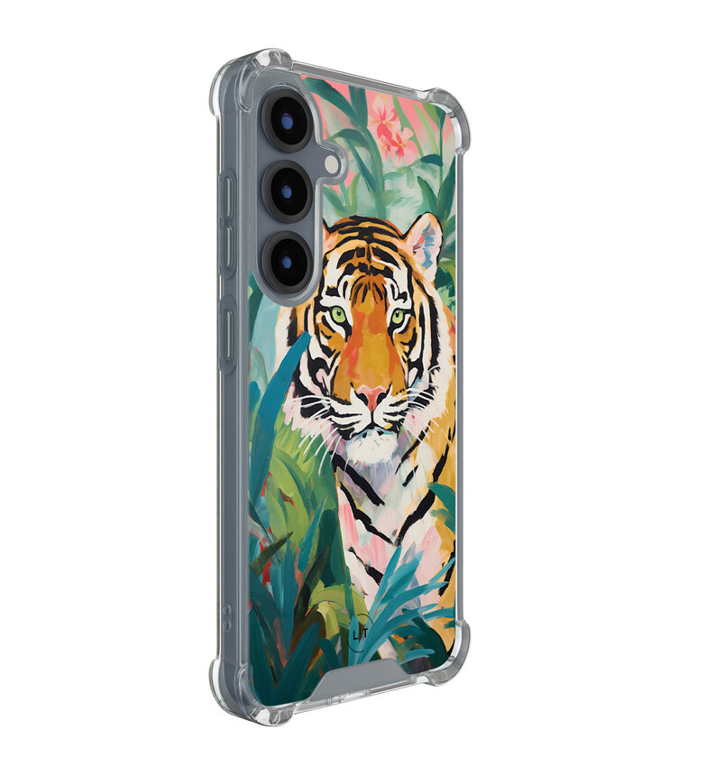 Met zijn levendige tijgerprint en weelderige jungle-achtergrond, voegt dit hoesje een exotische flair toe aan je telefoon. Het robuuste ontwerp met schokabsorberende eigenschappen zorgt voor uitstekende bescherming tegen dagelijkse slijtage.